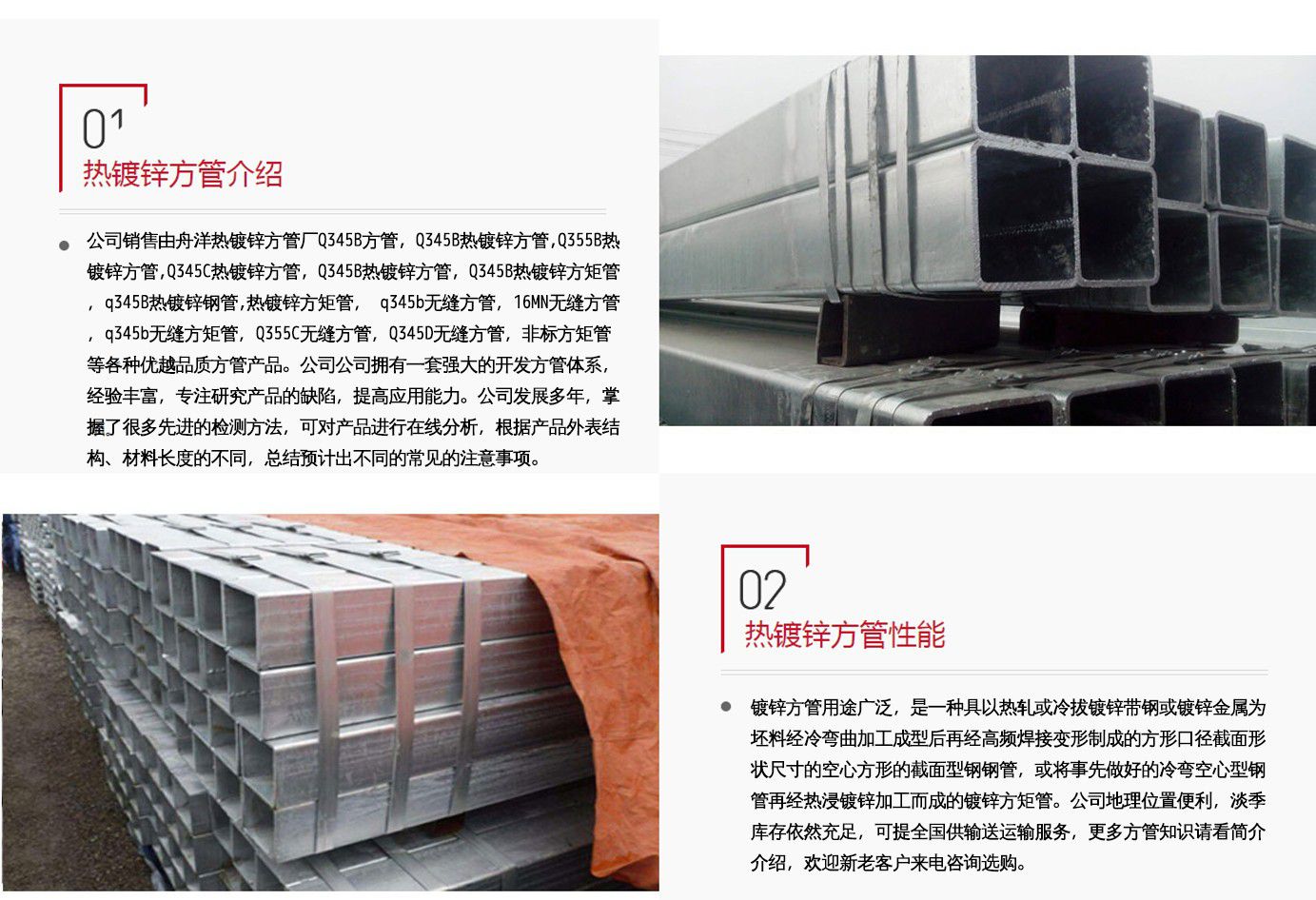 天津鍍鋅方管廠長期銷售方管,鍍鋅方管,熱鍍鋅方管,鍍鋅方管廠,鍍鋅方矩管廠家等產品。      公司憑借豐富齊全的規格品種,過硬的質量,合理的價格,完善的服務,不斷地受到新老用戶及業內人士的肯定和信任,我們本著及用戶之所及,想用戶之所想的服務宗旨不斷地拼搏,進取,在此對多年來支持我們的各行各業的新老朋友表示由衷的感謝,在新世紀與各界朋友共同成長壯大,愿我們今后的合作更加愉快!  我公司恪守“以誠信為本,譽求發展”的文化理念;“聚精會神抓質量 一心一意求發展”的經營宗旨,始終堅持以“創新是永恒的主題,超越是不懈的追求”的公司精神。以客戶需求為導向、客戶要求為標準,愿意以可靠的產品和完善的售后服務,竭誠為廣大的客戶服務。...